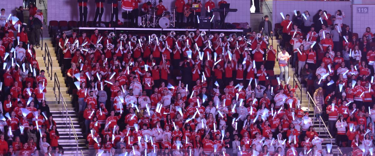 Pep Band is the most flexible music ensemble to join. We form two bands that rotate through performances, and students can miss a performance if they get a sub from the other band. And when we put both bands together for big events…look out!! The BU Pep Band is the driving force of the game day experience at all home Hockey and Basketball games. With a song list of over 100 classic and current tunes, the Pep Band is a high-energy, powerful ensemble beloved by our teams and fans alike. The Pep Band is also an integral part of the “Dog Pound” student fan section. Since our teams are perennial contenders for post-season play, the ensemble has many opportunities for paid travel to conference and NCAA tournaments around the country. There are even opportunities to get paid for playing at games that occur over breaks. Come be a part of this vibrant, energetic ensemble!