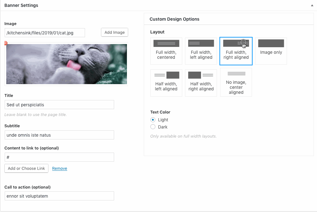 Editing the banner settings: